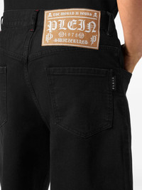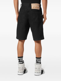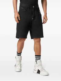 skull-embroidered denim shorts Highlights - Black/white - Stretch-design - Denim - Skull embroidery to the front - Applique logo - Mid-rise - Belt loops - Concealed fly and button fastening - Classic five pockets - Knee-length Imported Composition Cotton 98%, Elastane 2%