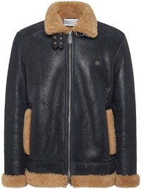 skull-embroidered jacket Highlights - Black/caramel brown - Sheepskin - Shearling - Skull embroidery to the rear - Front zip fastening - Spread collar - Two side welt pockets - Long sleeves - Straight hem Imported Composition Lining: Polyester 65%, Cotton 35% Outer: Sheep Skin/Shearling 100%