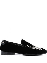 skull-embroidered velvet loafers
