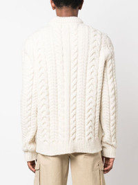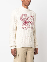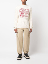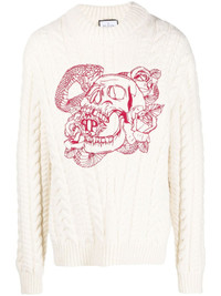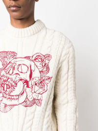 skull-embroidered cable-knit sweatshirt Highlights - White - Wool blend - Cable knit - Skull embroidery to the front - Ribbed trim - Crew neck - Long sleeves - Straight hem Made in Italy Composition Wool 80%, Nylon 20% SIZE & FIT Model measurements Height 6 ft 2 in(1.87 m) Bust/Chest 36.22 in(92 cm) Hips 37 in(94 cm) Waist 27.95 in(71 cm) FittingInformation Designed for a relaxed fit, this piece allows for comfort and movement when worn Made with a heavyweight knit, this piece offers some stretch This piece fits true to size – take your usual size Washing instructions Machine Wash