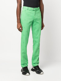 skull embroidery straight-leg trousers Philipp Plein adds a bold twist to the classic straight-leg jeans. This model is crafted from cotton, in vibrant green, and is decorated with skull embroideries all over, for a bold touch. Highlights - Green - Cotton blend - Embroidered motif - Mid-rise - Belt loops - Classic five pockets - Straight leg Made in Italy Composition Outer: Cotton 98%, Spandex/Elastane 2% Lining: Cotton 65%, Polyester 35% SIZE & FIT Model measurements Height 6 ft 2 in(1.88 m) Bust/Chest 36.61 in(93 cm) Hips 35.82 in(91 cm) Waist 27.95 in(71 cm) Washing instructions Dry Clean Only