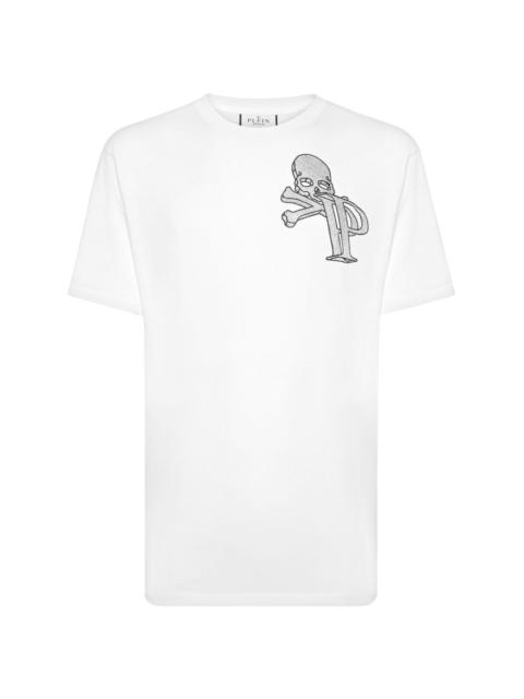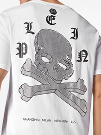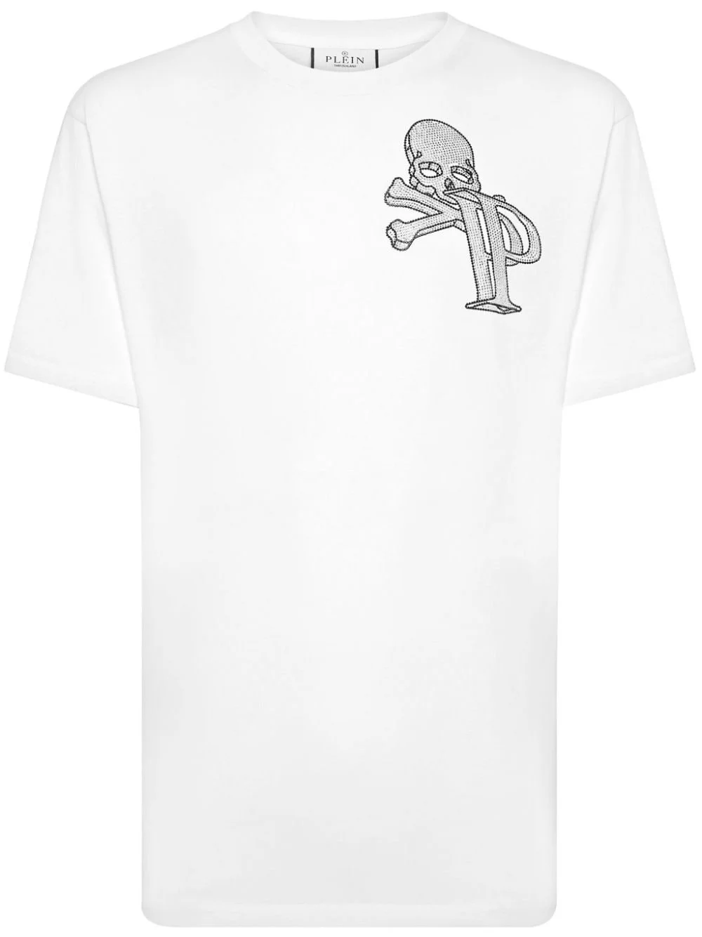 skull logo cotton T-shirt Highlights - White - Cotton - Crew neck - Short sleeves - Rhinestone embellishment - Logo print to the front - Applique logo - Logo print to the rear - Short sleeves - Skull and bones motif - Straight hem Imported Composition Cotton 100%