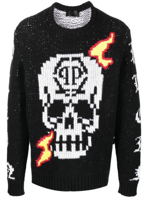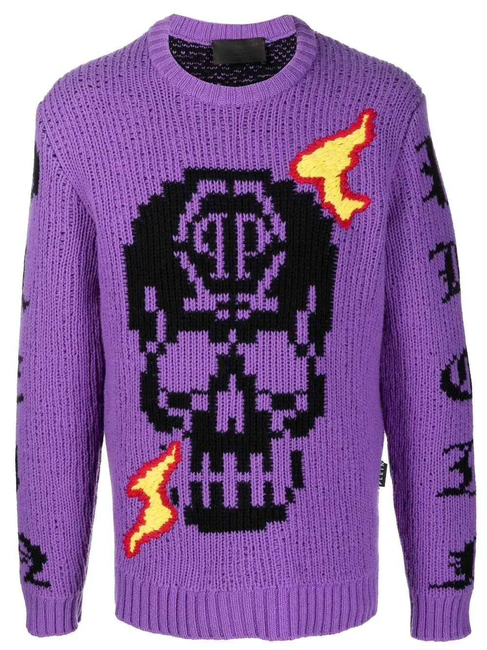 Skull logo embroidered jumper purple fabric skull embroidery to the front knitted construction crew neck long sleeves Made in Italy Composition Outer: Lambs Wool 100% SIZE & FIT Model measurements Height 6 ft 2 in(1.88 m) Bust/Chest 36.61 in(93 cm) Hips 35.82 in(91 cm) Waist 27.95 in(71 cm) FittingInformation This piece fits true to size. We recommend you get your regular size Cut for a loose fit Made with a mid-weight fabric Washing instructions Dry Clean Only
