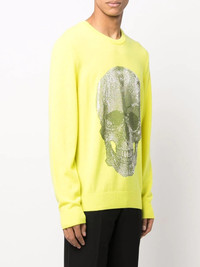 Skull logo knitted sweater yellow cashmere skull print to the front rhinestone embellishment fine knit crew neck long sleeves Made in Italy Composition Cashmere 100% SIZE & FIT Model measurements Height 6 ft 2 in(1.87 m) Bust/Chest 38.18 in(97 cm) Hips 36.61 in(93 cm) Waist 29.13 in(74 cm) FittingInformation This piece fits true to size. We recommend you get your regular size Cut for a relaxed fit Made with a mid-weight fabric Washing instructions Dry Clean Only