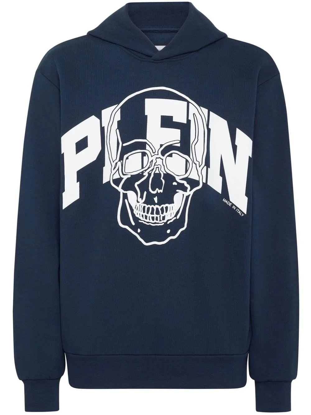 Skull logo-print cotton hoodie Highlights - Navy blue/white - Cotton - Skull print - Logo print at the chest - Applique logo - Classic hood - Drop shoulder - Long sleeves - Ribbed trim - Straight hem Made in Italy Composition Cotton 100%