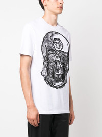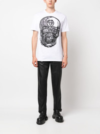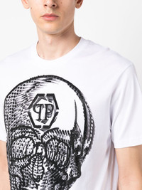 skull-print cotton T-shirt Highlights - White/black - Cotton - Skull print to the front - Logo print to the front - Logo patch to the side - Logo patch to the rear - Round neck - Short sleeves - Straight hem Imported Composition Polyester 100%, Cotton 100% SIZE & FIT Model measurements Height 6 ft 2 in(1.87 m) Bust/Chest 36.41 in(92.5 cm) Hips 35.43 in(90 cm) Waist 29.52 in(75 cm) FittingInformation Designed for a relaxed fit, this piece allows for comfort and movement when worn Made from a midweight non-stretch fabric, this piece offers minimal elasticity when worn This piece fits true to size – take your usual size