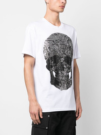 skull-print cotton T-shirt Highlights - White/black - Cotton - Logo patch to the side - Skull print - Round neck - Short sleeves - Straight hem Imported Composition Cotton 100% SIZE & FIT Model measurements Height 6 ft 1 in(1.85 m) Bust/Chest 35.82 in(91 cm) Hips 37.79 in(96 cm) Waist 29.13 in(74 cm) FittingInformation Designed for a relaxed fit, this piece allows for comfort and movement when worn Made from a midweight non-stretch fabric, this piece offers minimal elasticity when worn This piece fits true to size – take your usual size Washing instructions Hand Wash