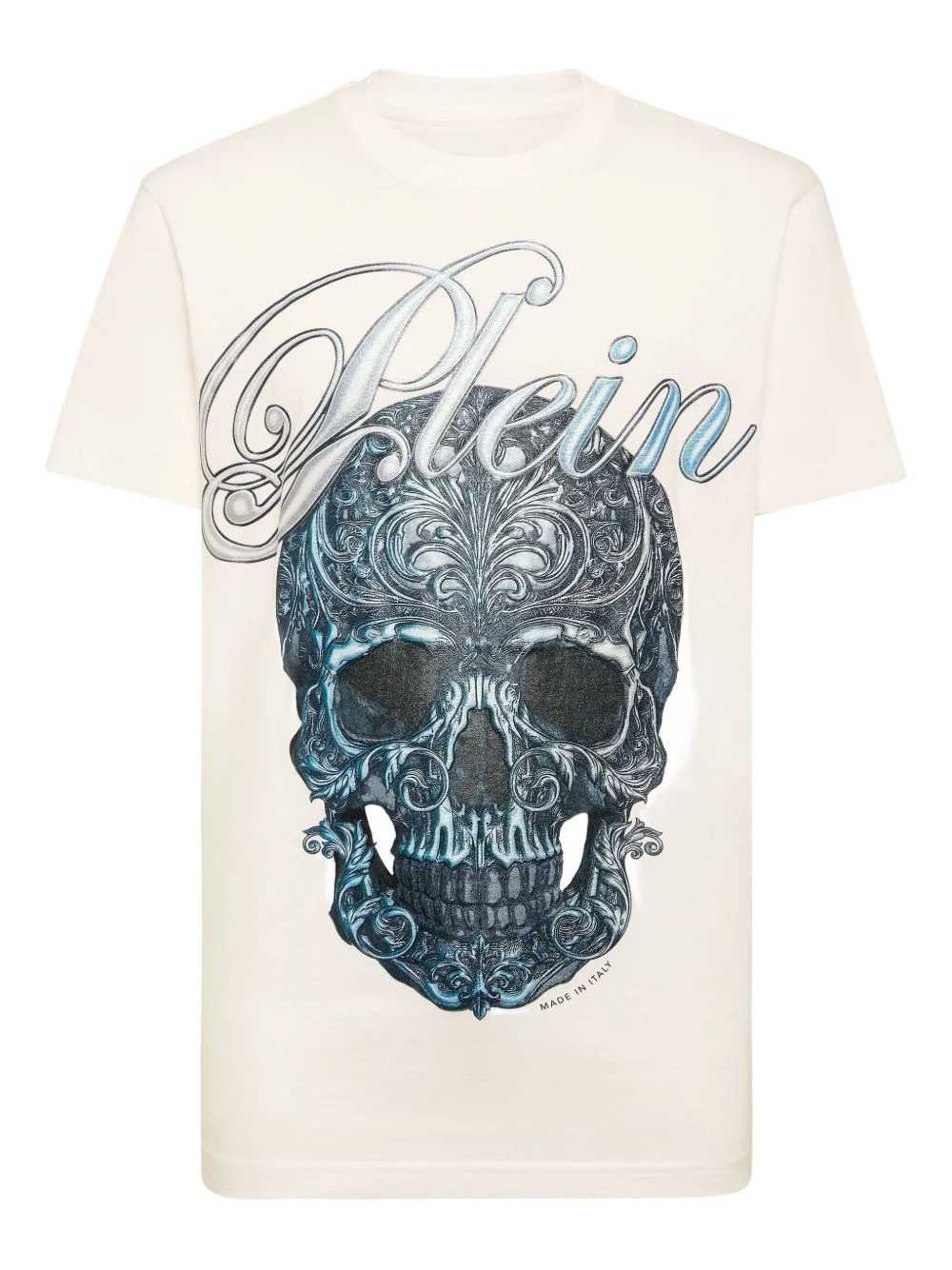 skull-print cotton T-shirt Highlights - Off-white - Skull print - Baroque-style embellishment - Round neck - Short sleeves - Cotton fabric Made in Italy Composition Cotton 100% Washing instructions Read Manufacturer Guidelines