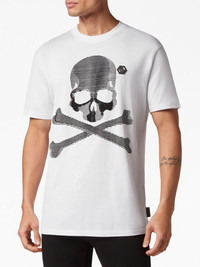 skull-print cotton T-shirt Highlights - White - Cotton - Skull print to the front - Rhinestone embellishment - Round neck - Short sleeves - Straight hem Imported Composition Cotton 100% SIZE & FIT FittingInformation Designed for a relaxed fit, this piece allows for comfort and movement when worn Made from a midweight non-stretch fabric, this piece offers minimal elasticity when worn This piece fits true to size – take your usual size