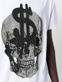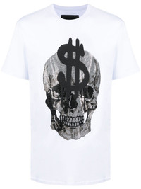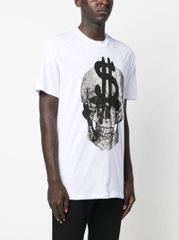 Skull-print crew-neck T-shirt white/black cotton skull print crew neck short sleeves Imported Composition Cotton 100%, Glass Fiber 100% SIZE & FIT Model measurements Height 6 ft 2 in(1.87 m) Bust/Chest 36.41 in(92.5 cm) Hips 37 in(94 cm) Waist 29.52 in(75 cm) FittingInformation This piece fits true to size. We recommend you get your regular size Cut for a slim fit Made with a mid-weight fabric Washing instructions Hand Wash