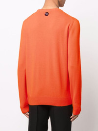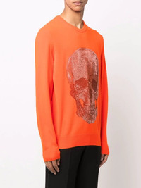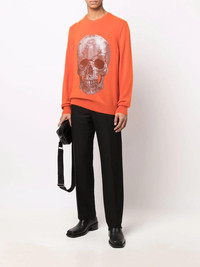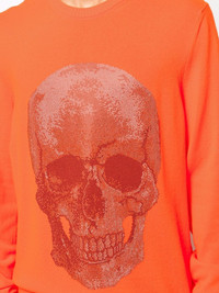 Skull print crewneck sweater orange cotton skull print to the front rhinestone crew neck long sleeves Made in Italy Composition Fabric 100% SIZE & FIT Model measurements Height 6 ft 2 in(1.87 m) Bust/Chest 38.18 in(97 cm) Hips 36.61 in(93 cm) Waist 29.13 in(74 cm) FittingInformation This piece fits true to size. We recommend you get your regular size Cut for a relaxed fit Made with a mid-weight fabric Washing instructions Dry Clean Only