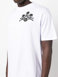 skull-print detail T-shirt cloud white/jet black cotton skull print logo patch at the chest round neck short sleeves straight hem Imported Composition Cotton 100% SIZE & FIT Model measurements Height 6 ft 0 in(1.84 m) Bust/Chest 35.82 in(91 cm) Hips 37 in(94 cm) Waist 28.34 in(72 cm) FittingInformation This piece fits true to size. We recommend you get your regular size Cut for a relaxed fit Made with a mid-weight fabric Washing instructions Hand Wash