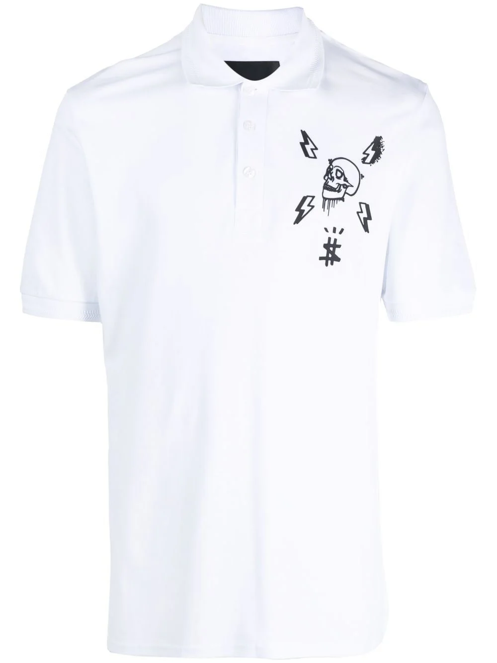 skull-print polo shirt The signature skull print embellishes the front of this short-sleeve polo shirt from Philipp Plein. The classic design is spun from cotton in a versatile white hue. Imported Composition Cotton 100% SIZE & FIT Model measurements Height 6 ft 2 in(1.88 m) Bust/Chest 36.61 in(93 cm) Hips 37.79 in(96 cm) Waist 28.74 in(73 cm) FittingInformation This piece fits true to size. We recommend you get your regular size Cut for a slim fit Made with a mid-weight fabric Washing instructions Machine Wash