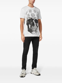 skull-print round-neck T-shirt Highlights - White/black - Cotton - Jersey texture - Skull print to the front - Round neck - Short sleeves - Embossed logo to the front - Applique logo - Straight hem Made in Italy Composition Cotton 100%