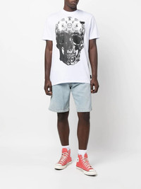 skull-print short-sleeve T-shirt Highlights - White - Black - Cotton - Jersey knit - Skull print to the front - Logo print to the front - Round neck - Short sleeves - Straight hem - When buying this unisex item, keep in mind that it is graded in standard men's sizing. Imported Composition Cotton 100% SIZE & FIT Model measurements Height 5 ft 11 in(1.8 m) Bust/Chest 33.07 in(84 cm) Hips 37.4 in(95 cm) Waist 25.19 in(64 cm) FittingInformation This piece is unisex. Please take care when selecting your size Cut for a relaxed fit for both men and women Made with a mid-weight fabric Washing instructions Machine Wash