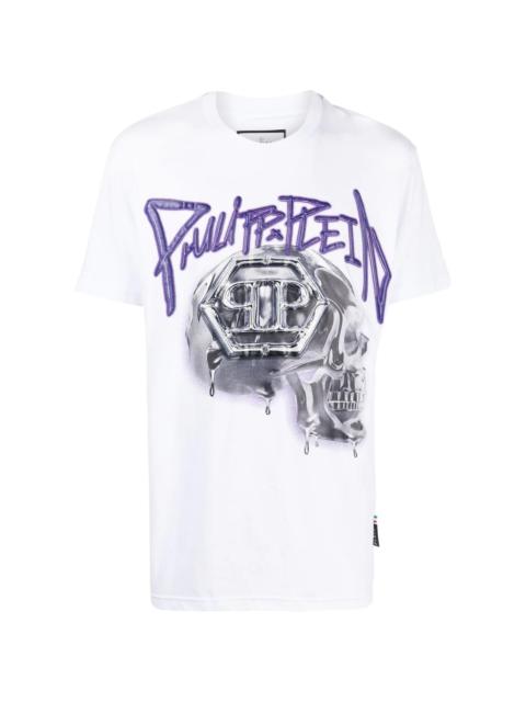 skull-print short-sleeve T-shirt cloud white cotton jersey knit skull print to the front logo print to the front logo patch to the rear round neck short sleeves straight hem Made in Italy Composition Cotton 100% SIZE & FIT Model measurements Height 6 ft 0 in(1.84 m) Bust/Chest 35.82 in(91 cm) Hips 37 in(94 cm) Waist 28.34 in(72 cm) FittingInformation This piece fits true to size. We recommend you get your regular size Cut for a relaxed fit Made with a mid-weight fabric Washing instructions Hand Wash