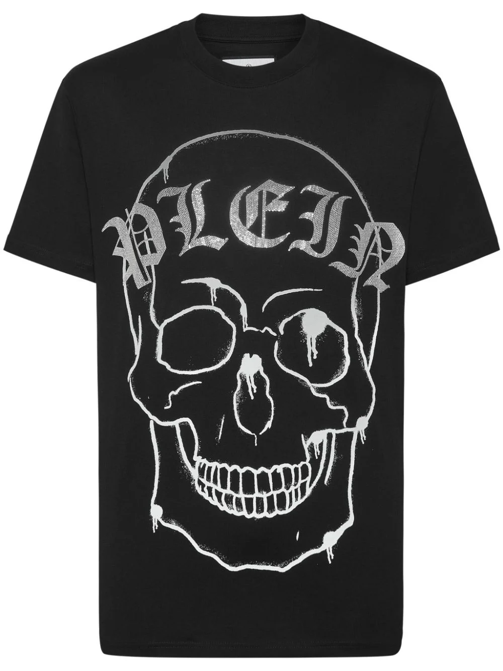 Skull-print T-shirt Highlights - Black - Cotton - Jersey texture - Crew neck - Short sleeves - Studded logo detail - Graphic print to the front - Skull print - Logo patch to the rear - Straight hem Imported Composition Cotton 100%, Glass Fiber 100%