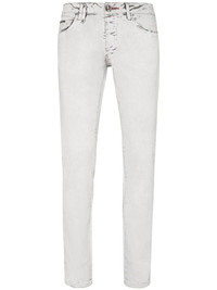 skull-stamp washed skinny jeans Highlights - Light grey - Stretch-cotton - Denim - Light wash - Skull stamp to the rear - Logo patch to the rear - Belt loops - Slim cut - Concealed fly and button fastening Imported Composition Cotton 98%, Elastane 2% Washing instructions Read Manufacturer Guidelines
