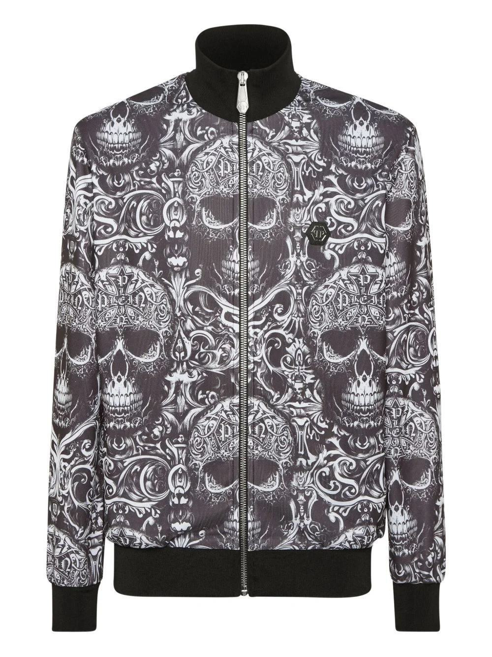 skull tattoo-print jacket Highlights - Black - Skull print - Tattoo print - Zip fastening - Stand collar - Ribbed cuffs Imported Composition Fabric 100% Washing instructions Read Manufacturer Guidelines