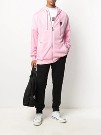 skull zipped hoodie pink cotton drawstring hood front zip fastening long sleeves skull patch detail loose fit Imported Composition Outer: Cotton 88%, Polyester 12% Lining: Cotton 100% SIZE & FIT Model measurements Height 6 ft 2 in(1.87 m) Bust/Chest 38.18 in(97 cm) Hips 36.61 in(93 cm) Waist 29.13 in(74 cm) Washing instructions Hand Wash