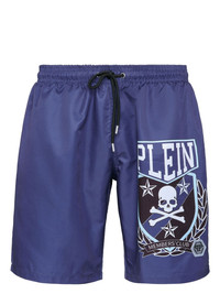Skull&Bones-print swim shorts Highlights - Navy blue - Skull print to the front - Elasticated drawstring waistband - Two side welt pockets - Logo print at the leg - Straight hem - Be mindful to try on swimwear over your own garments. Imported Composition Polyester 100%