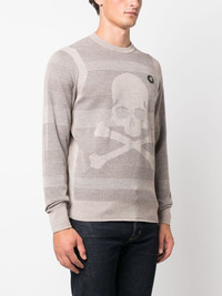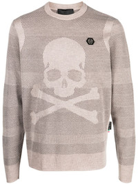 Skull&Bones wool-blend jumper Highlights - Beige/brown - Wool-silk blend - Knitted construction - Jacquard logo motif - Horizontal stripe pattern - Logo patch at the chest - Logo patch to the rear - Mini logo tag - Crew neck - Long sleeves - Ribbed cuffs and hem - Straight hem Made in Italy Composition Wool 50%, Silk 50% SIZE & FIT Model measurements Height 6 ft 2 in(1.89 m) Bust/Chest 38.97 in(99 cm) Hips 38.18 in(97 cm) Waist 32.28 in(82 cm) FittingInformation Designed for a regular fit, offering a comfortable loose fit throughout the body Made with a midweight knit, this piece offers some stretch This piece fits true to size – take your usual size Washing instructions Dry Clean Only
