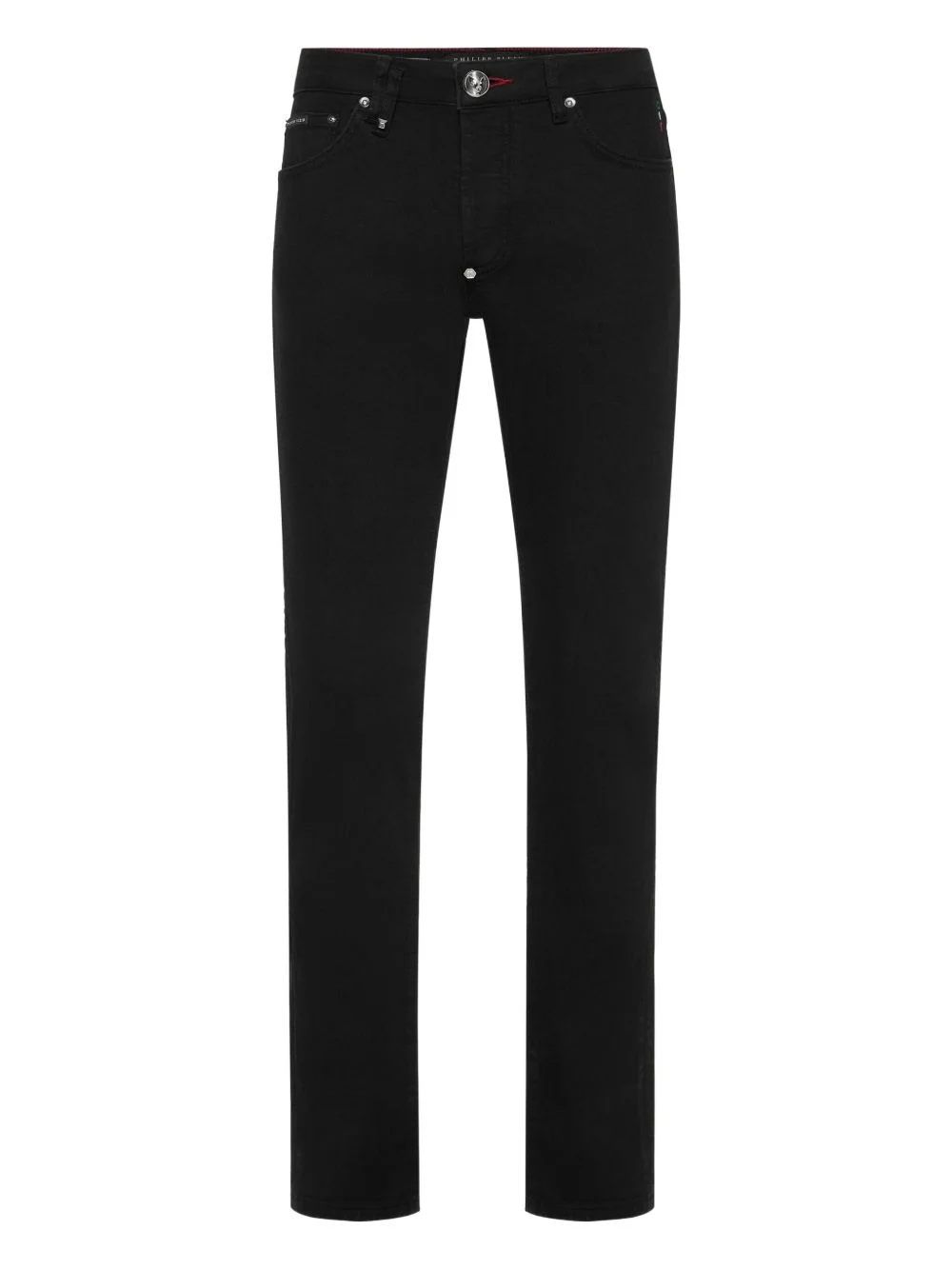 Skulls jeans Highlights - Black - Front button fastening - Classic five pockets - Rhinestone embellishment - Logo plaque Imported Composition Cotton 98%, Elastane 2%