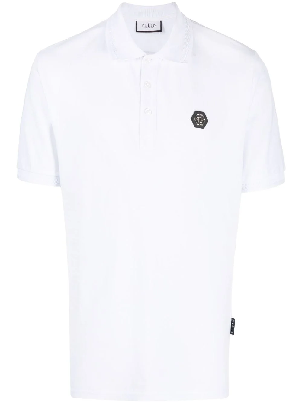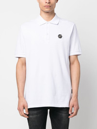 logo-patch short-sleeve polo shirt Highlights - White - Cotton blend - Logo patch at the chest - Polo collar - Short sleeves - Short front button fastening - Straight hem Imported Composition Cotton 95%, Elastane 5% SIZE & FIT Model measurements Height 6 ft 1 in(1.85 m) Bust/Chest 35.82 in(91 cm) Hips 37.79 in(96 cm) Waist 29.13 in(74 cm) FittingInformation Designed for a relaxed fit, this polo shirt offers comfort and movement Made from a midweight stretch fabric, this piece offers elasticity and flexibility when worn This piece fits true to size – take your usual size Washing instructions Hand Wash