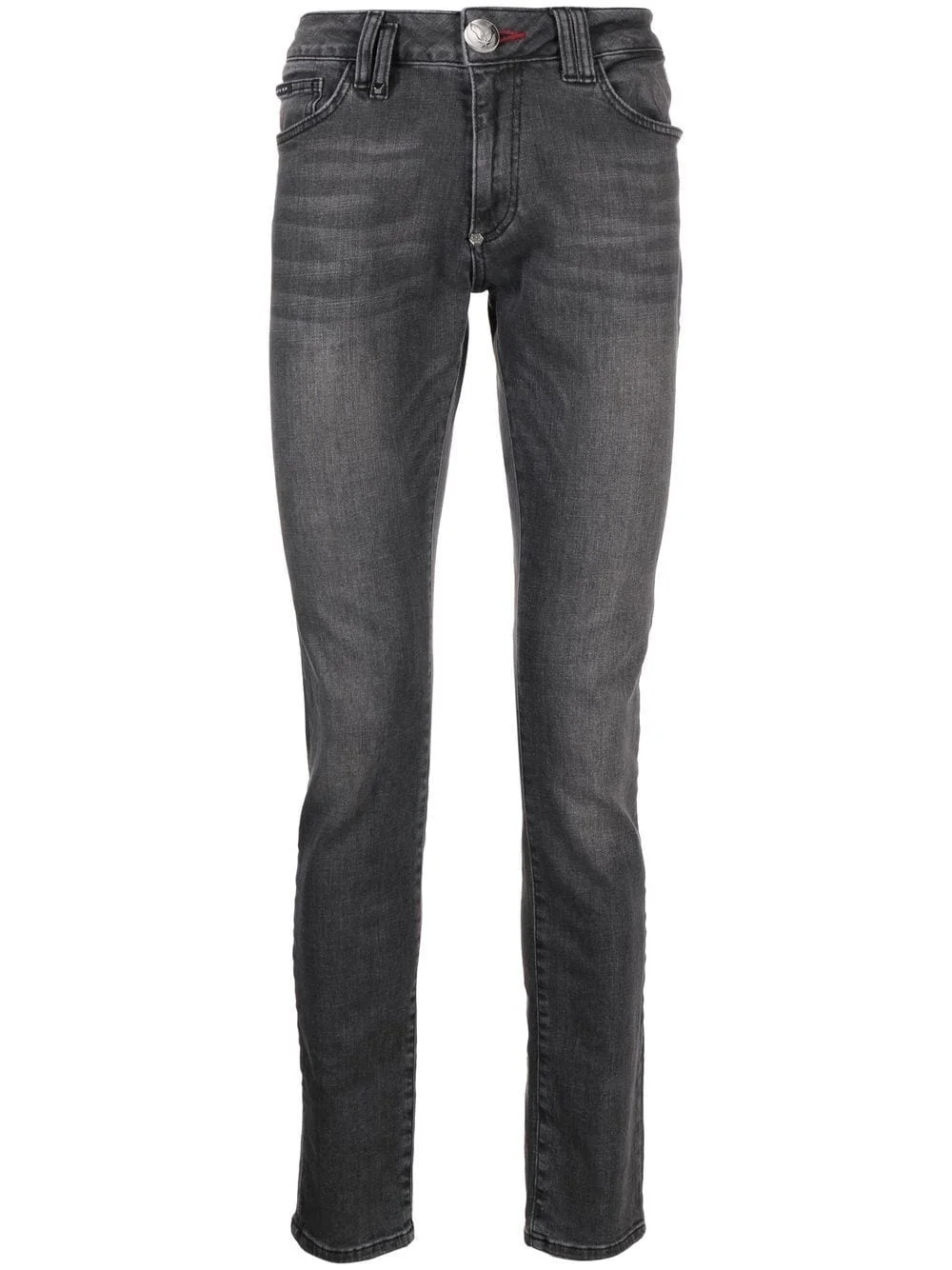 slim-cut leg jeans ash grey cotton slim cut logo plaque belt loops front button and zip fastening classic five pockets Imported Composition Outer: Polyester 100%, Cotton 98%, Elastane 2% Lining: Polyester 65%, Cotton 35% SIZE & FIT Model measurements Height 6 ft 2 in(1.89 m) Bust/Chest 37.4 in(95 cm) Hips 35.03 in(89 cm) Waist 27.95 in(71 cm) FittingInformation This piece fits true to size. We recommend you get your regular size Cut for a close fit Made with a mid-weight stretch fabric Washing instructions Machine Wash