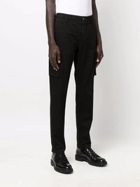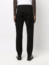 slim-fit cargo trousers black cotton blend mid-rise belt loops front button fastening two side cargo pockets Imported Composition Cotton 98%, Elastane 2% SIZE & FIT Model measurements Height 6 ft 2 in(1.87 m) Bust/Chest 36.41 in(92.5 cm) Hips 37 in(94 cm) Waist 29.52 in(75 cm) FittingInformation This piece fits true to size. We recommend you get your regular size Designed to be loose over the leg with a fitted waist and hem Made with a mid-weight fabric Washing instructions Machine Wash