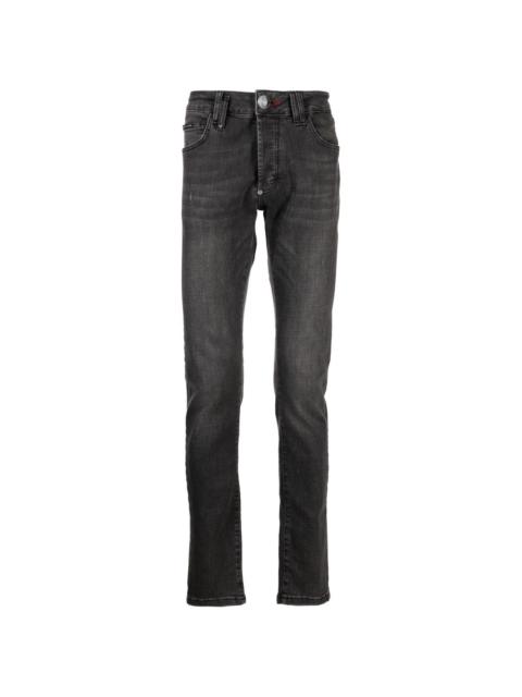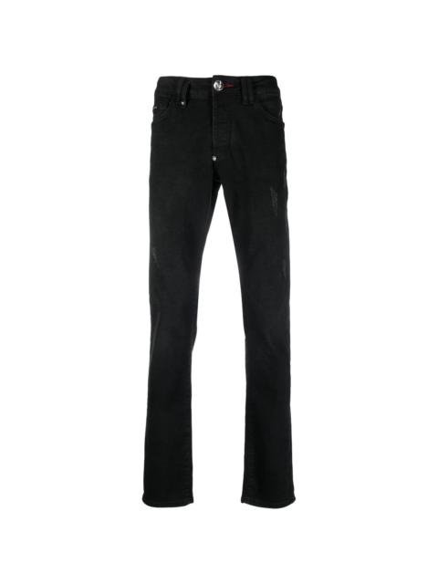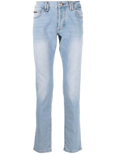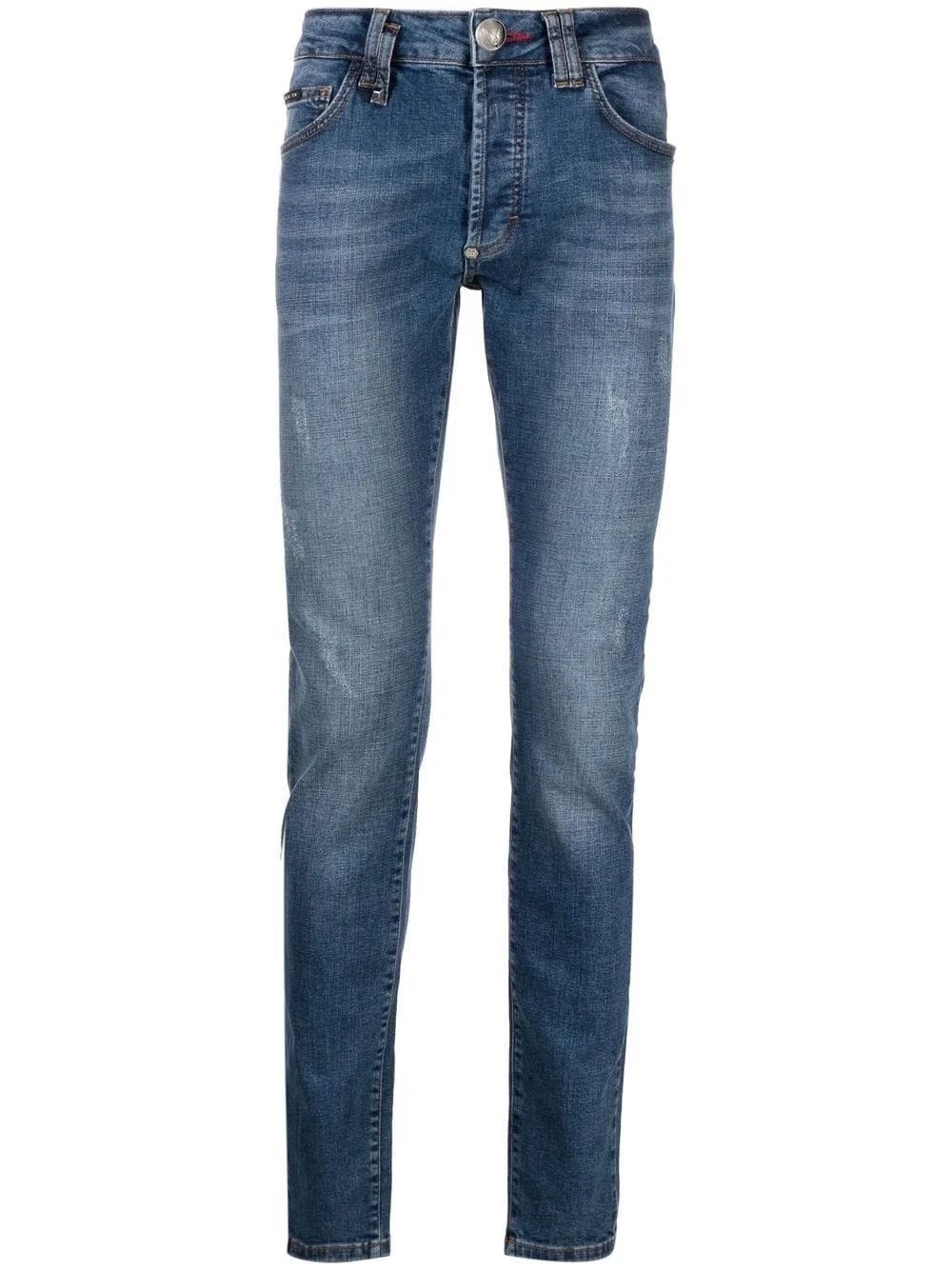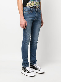 super straight-cut jeans blue stretch-cotton logo plaque belt loops front button and zip fastening classic five pockets slim cut full-length Imported Composition Outer: Polyester 100%, Cotton 98%, Elastane 2% Lining: Polyester 65%, Cotton 35% SIZE & FIT Model measurements Height 6 ft 2 in(1.89 m) Bust/Chest 37.4 in(95 cm) Hips 35.03 in(89 cm) Waist 27.95 in(71 cm) FittingInformation Designed for a skinny fit, these jeans offer a close fit throughout Constructed from stretch denim, this piece offers a stretch fit with durability This piece fits true to size – take your usual size Washing instructions Machine Wash