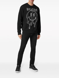 Smile rhinestone-embellished sweatshirt Highlights - Black - Cotton - Smiley face motif - Rhinestone - Rhinestone embellishment - Crew neck - Drop shoulder - Long sleeves - Straight hem Imported Composition Cotton 100%, Glass Fiber 100% Washing instructions Read Manufacturer Guidelines