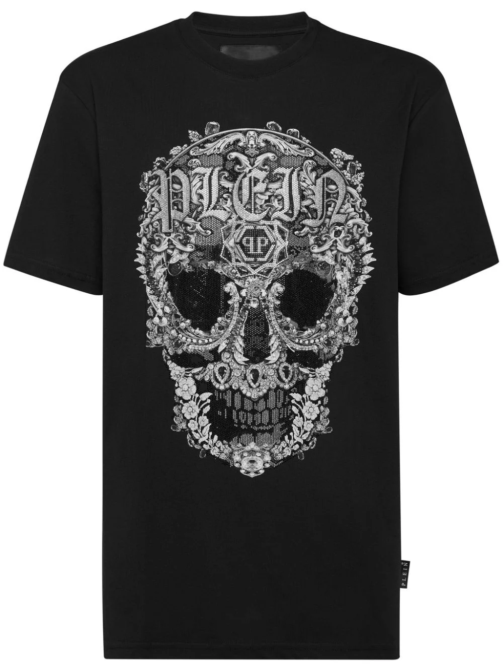 SS Baroque Skull T-shirt Highlights - Black/white - Cotton - Jersey texture - Graphic print to the front - Ribbed band collar - Crew neck - Short sleeves - Crystal embellishment - Straight hem Imported Composition Glass Fiber 100%, Cotton 100%