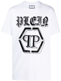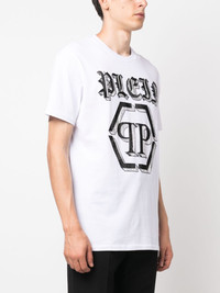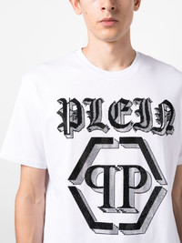 SS Chrome round-neck T-shirt Highlights - Optical white/jet black - Cotton - Rhinestone embellishment - Logo print to the front - Logo plaque - Round neck - Short sleeves - Straight hem Imported Composition Cotton 100%, Polyester 100% SIZE & FIT Model measurements Height 6 ft 2 in(1.87 m) Bust/Chest 36.41 in(92.5 cm) Hips 35.43 in(90 cm) Waist 29.52 in(75 cm) FittingInformation Designed for a relaxed fit, this piece allows for comfort and movement when worn Made from a midweight non-stretch fabric, this piece offers minimal elasticity when worn This piece fits true to size – take your usual size