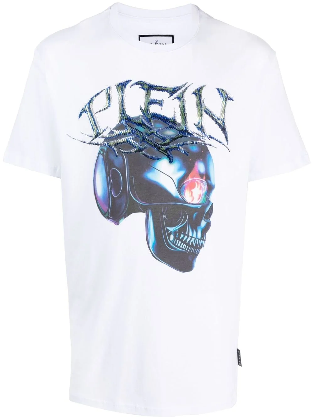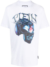 SS Chrome round-neck T-shirt Highlights - Optical white - Cotton - Jersey knit - Skull print to the front - Logo print at the chest - Logo plaque - Round neck - Short sleeves - Straight hem Imported Composition Cotton 100%, Polyester 100% SIZE & FIT Model measurements Height 6 ft 2 in(1.87 m) Bust/Chest 36.41 in(92.5 cm) Hips 35.43 in(90 cm) Waist 29.52 in(75 cm) FittingInformation Designed for a relaxed fit, this piece allows for comfort and movement when worn Made from a midweight non-stretch fabric, this piece offers minimal elasticity when worn This piece fits true to size – take your usual size