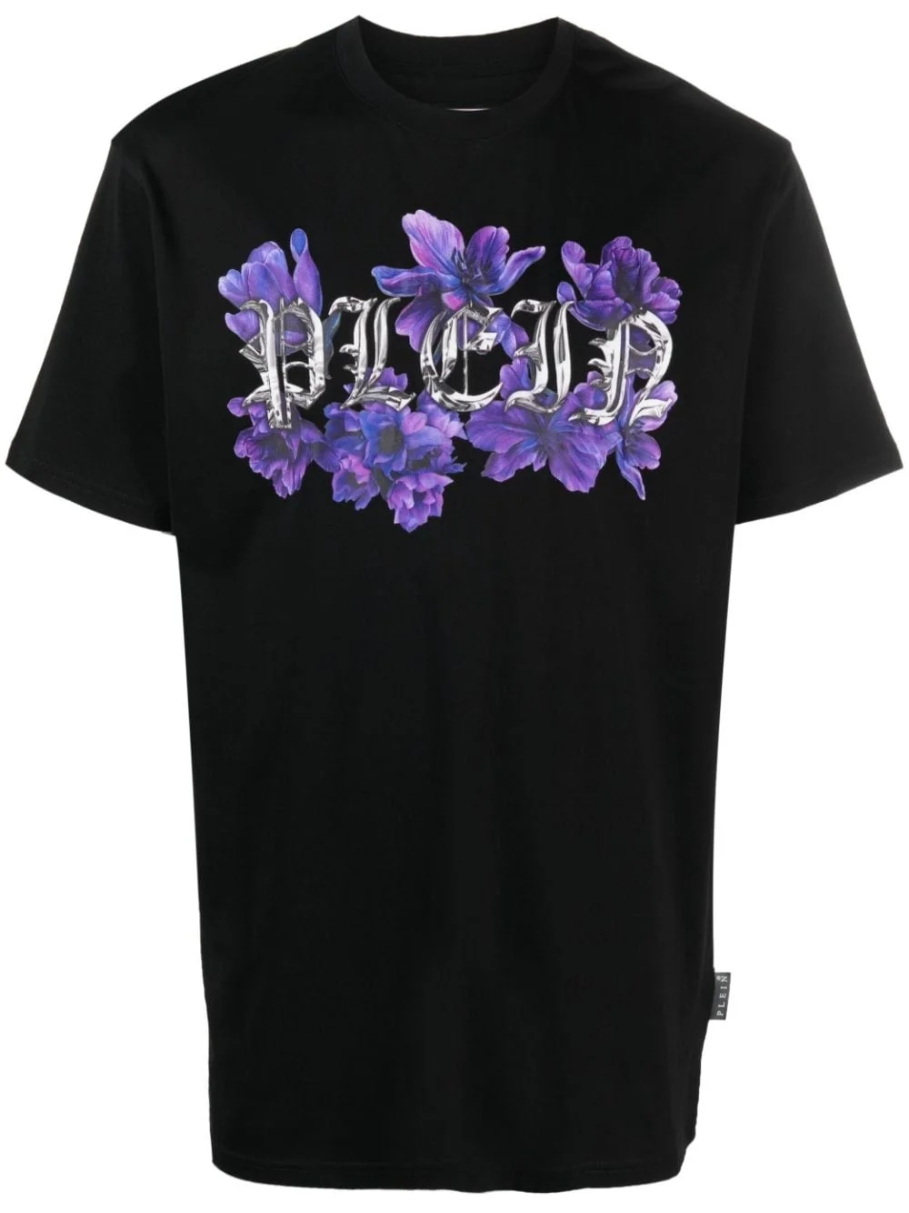 SS Flowers round-neck T-shirt Highlights - Black/lilac purple/white - Jersey knit - Floral print to the front - Logo print to the front - Tonal logo plaque - Round neck - Short sleeves - Straight hem Imported Composition Polyester 100% SIZE & FIT Model measurements Height 6 ft 2 in(1.87 m) Bust/Chest 36.41 in(92.5 cm) Hips 35.43 in(90 cm) Waist 29.52 in(75 cm) FittingInformation Designed for a relaxed fit, this piece allows for comfort and movement when worn Made from a midweight non-stretch fabric, this piece offers minimal elasticity when worn This piece fits true to size – take your usual size