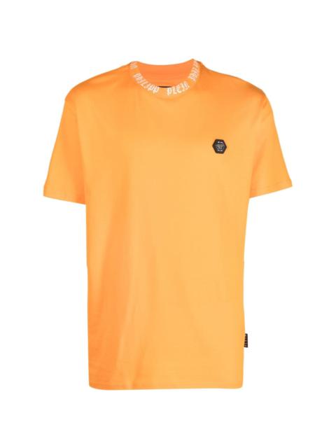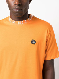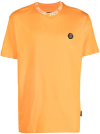 SS Gothic Plein logo-patch T-shirt Highlights - Apricot - Jersey knit - Logo print at the neckline - Logo patch at the chest - Drop shoulder - Short sleeves - Straight hem Imported Composition Polyester 100% SIZE & FIT Model measurements Height 6 ft 0 in(1.84 m) Bust/Chest 35.82 in(91 cm) Hips 37 in(94 cm) Waist 28.34 in(72 cm) FittingInformation Designed for a relaxed fit, this piece allows for comfort and movement when worn Made from a midweight non-stretch fabric, this piece offers minimal elasticity when worn This piece fits true to size – take your usual size Washing instructions Hand Wash