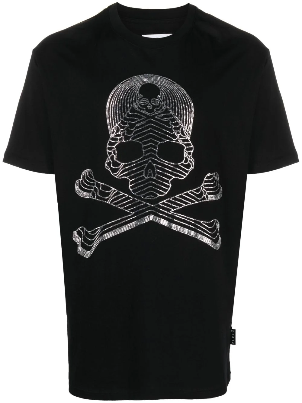 SS Skull & Bones round-neck T-shirt Highlights - Jet black - Stretch-cotton - Rhinestone embellishment - Skull applique - Tonal logo plaque - Round neck - Short sleeves - Straight hem Imported Composition Cotton 95%, Elastane 5%