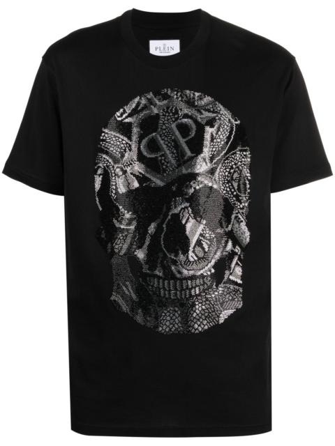 SS Snake round-neck T-shirt Highlights - White/black - Cotton - Jersey knit - Skull print to the front - Logo print to the front - Logo plaque - Round neck - Short sleeves - Straight hem Imported Composition Polyester 100%, Cotton 100% SIZE & FIT Model measurements Height 6 ft 2 in(1.87 m) Bust/Chest 36.41 in(92.5 cm) Hips 35.43 in(90 cm) Waist 29.52 in(75 cm) FittingInformation Designed for a relaxed fit, this piece allows for comfort and movement when worn Made from a midweight non-stretch fabric, this piece offers minimal elasticity when worn This piece fits true to size – take your usual size