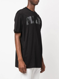 Stones logo-embellished T-shirt black cotton jersey knit logo embellishment stud detailing logo patch to the rear round neck short sleeves straight hem Imported Composition Cotton 100% SIZE & FIT Model measurements Height 6 ft 1 in(1.85 m) Bust/Chest 31.88 in(81 cm) Hips 33.07 in(84 cm) Waist 26.77 in(68 cm) FittingInformation This piece fits true to size. We recommend you get your regular size Cut for a relaxed fit Made with a mid-weight fabric Washing instructions Hand Wash