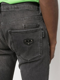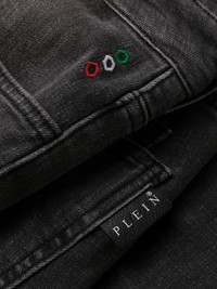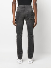 straight-leg cut jeans dark grey cotton straight leg logo plaque belt loops front button and zip fastening classic five pockets Imported Composition Outer: Cotton 98%, Elastane 2% Lining: Polyester 65%, Cotton 35% SIZE & FIT Model measurements Height 6 ft 2 in(1.89 m) Bust/Chest 37.4 in(95 cm) Hips 35.03 in(89 cm) Waist 27.95 in(71 cm) FittingInformation Designed for a skinny fit, these jeans offer a close fit throughout Constructed from stretch denim, this piece offers a stretch fit with durability This piece fits true to size – take your usual size Washing instructions Machine Wash