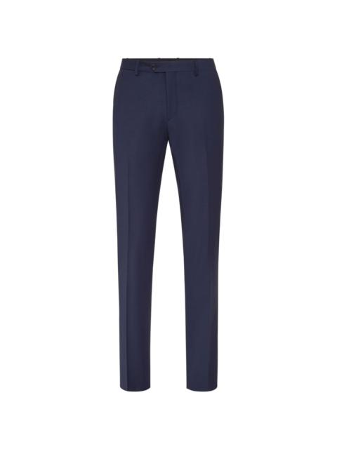 straight-leg wool-blend trousers Highlights - Navy blue - Cotton-wool blend - Tailored design - Logo patch to the rear - Mid-rise - Belt loops - Concealed fly and button fastening - Two side slit pockets - Two rear welt pockets Made in Italy Composition Outer: Polyester 53%, Virgin Wool 43%, Elastane 4% Lining: Polyester 65%, Cotton 35%