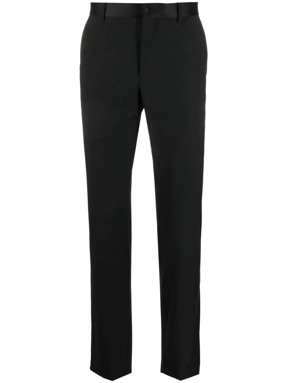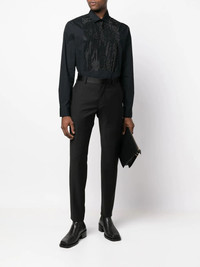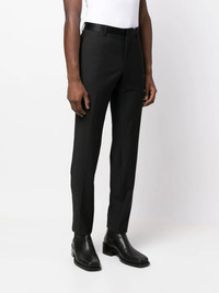 straight-leg wool-blend trousers black cotton-wool blend tailored design tonal stitching pressed crease belt loops front button and zip fastening straight leg Made in Italy Composition Lining: Polyester 65%, Cotton 35% Outer: Polyester 52%, Wool 43%, Spandex/Elastane 5% SIZE & FIT Model measurements Height 6 ft 2 in(1.88 m) Bust/Chest 36.61 in(93 cm) Hips 35.82 in(91 cm) Waist 27.95 in(71 cm) FittingInformation This piece fits true to size. We recommend you get your regular size Cut for a slim fit Made with a mid-weight stretch fabric Washing instructions Dry Clean Only
