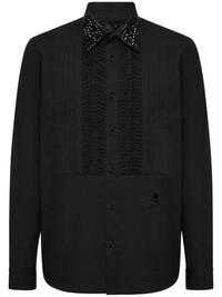 strass-detail long-sleeve shirt Highlights - Black - Front button fastening - Buttoned-cuff sleeves - Pleat detailing - Cutaway collar Made in Italy Composition Cotton 100%