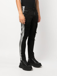 stripe-detail skinny jeans Highlights - Black - Cotton blend - Denim - Distressed finish - Side stripe detailing - Logo tag - Logo patch to the rear - Belt loops - Front button fastening - Classic five pockets - Skinny cut - Straight hem Made in Italy Composition Outer: Cotton 97%, Spandex/Elastane 3% Lining: Cotton 100% SIZE & FIT Model measurements Height 6 ft 2 in(1.88 m) Bust/Chest 37.79 in(96 cm) Hips 35.82 in(91 cm) Waist 29.92 in(76 cm) FittingInformation Designed for a skinny fit, these jeans offer a close fit throughout Constructed from stretch denim, this piece offers a stretch fit with durability This piece fits true to size – take your usual size Washing instructions Read Manufacturer Guidelines