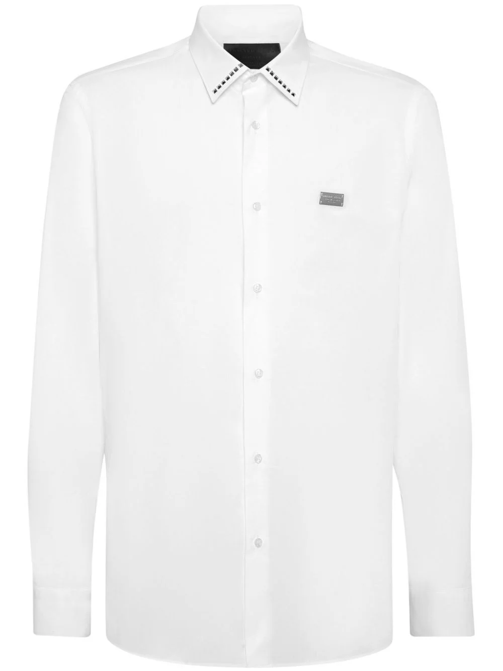 stud-detailing poplin shirt Highlights - White - Poplin texture - Logo patch at the chest - Stud detailing - Classic collar - Front button fastening - Long sleeves - Buttoned cuffs - Curved hem Made in Italy Composition Cotton 100%