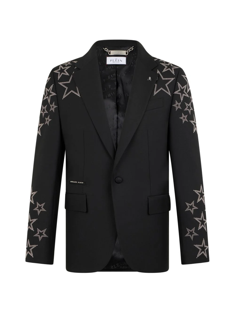 studs star-detail blazer Highlights - Black - Star-embellishment - Satin-texture - Single-button closure - Two flap-pockets - Single vent Imported Composition Outer: Aluminium 90%, Polyester 53%, Virgin Wool 43%, Polyamide 9%, Spandex/Elastane 4%, Other Materials 1% Lining: Viscose 51%, Recycled Acetate 49% Washing instructions Read Manufacturer Guidelines