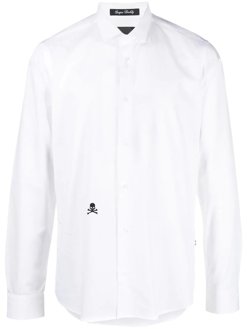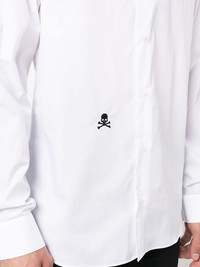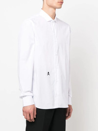 embroidered skull cotton shirt optical white/black cotton skull embroidery to the front front button placket classic collar long sleeves buttoned cuffs Made in Italy Composition Cotton 100% SIZE & FIT Model measurements Height 6 ft 1 in(1.85 m) Bust/Chest 35.82 in(91 cm) Hips 37.79 in(96 cm) Waist 29.13 in(74 cm) FittingInformation This piece fits true to size. We recommend you get your regular size Cut for a slim fit Made with a mid-weight non-stretch fabric Washing instructions Machine Wash