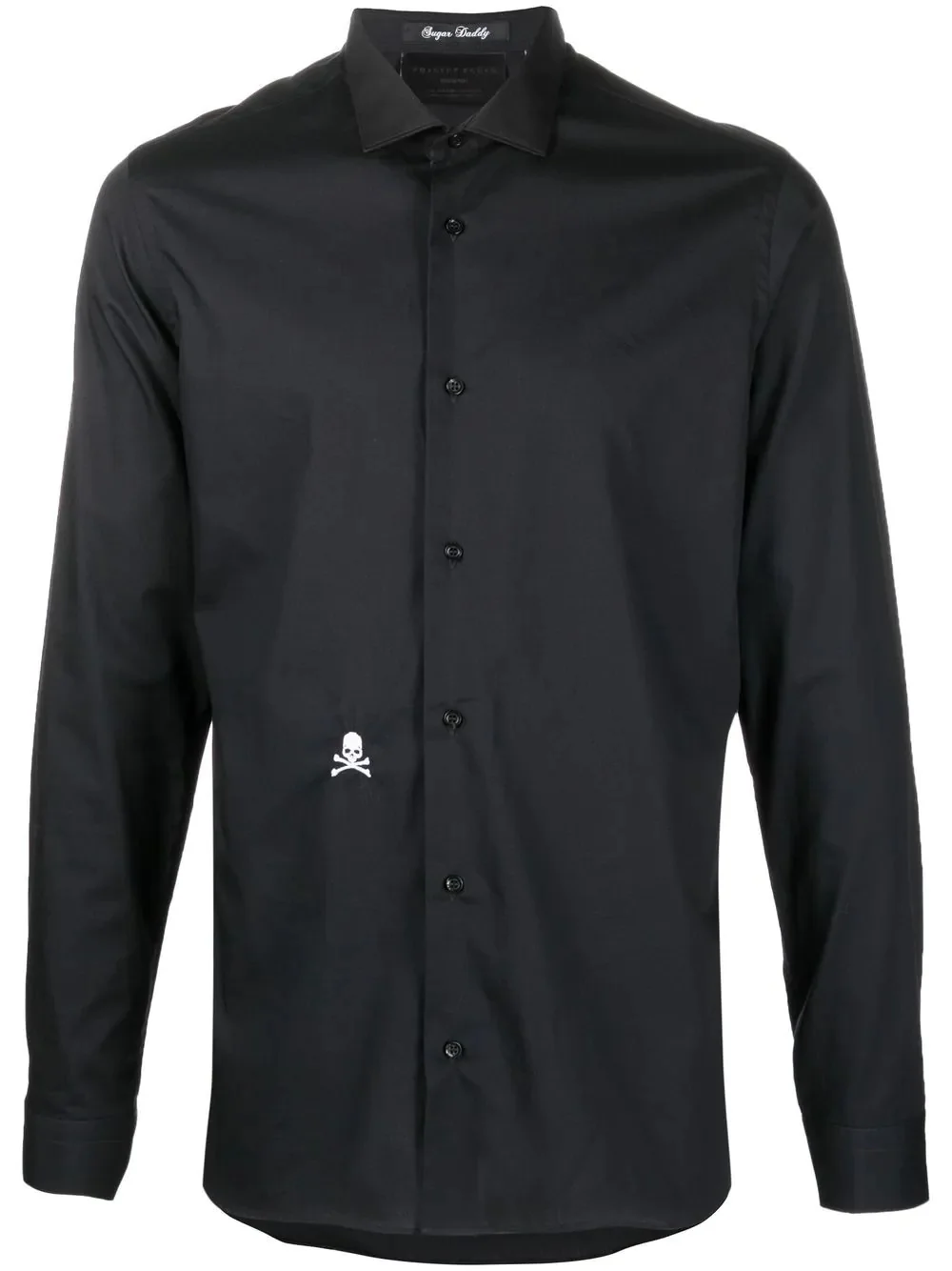 embroidered skull cotton shirt black/white cotton skull embroidery to the front front button placket classic collar long sleeves buttoned cuffs Made in Italy Composition Cotton 100% SIZE & FIT Model measurements Height 6 ft 2 in(1.89 m) Bust/Chest 37.79 in(96 cm) Hips 37 in(94 cm) Waist 29.92 in(76 cm) FittingInformation This piece fits true to size. We recommend you get your regular size Cut for a slim fit Made with a mid-weight non-stretch fabric Washing instructions Machine Wash