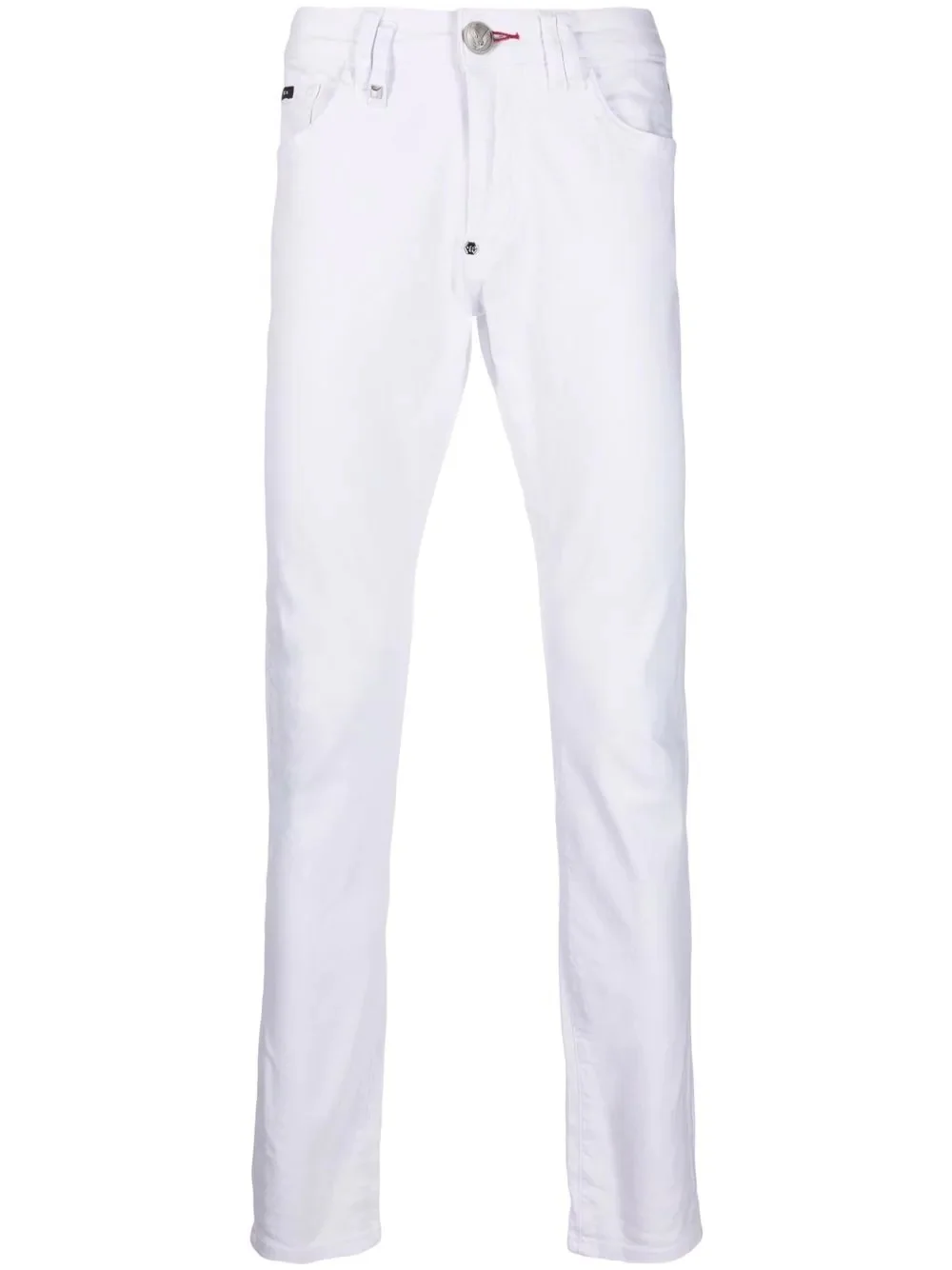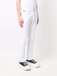 logo slim-fit jeans white stretch cotton logo patch to the rear slim cut button fly fastening belt loops classic five pockets Imported Composition Outer: Cotton 98%, Spandex/Elastane 2% Lining: Polyester 65%, Cotton 35% SIZE & FIT Model measurements Height 6 ft 1 in(1.86 m) Bust/Chest 38.58 in(98 cm) Hips 38.18 in(97 cm) Waist 27.95 in(71 cm) Washing instructions Hand Wash